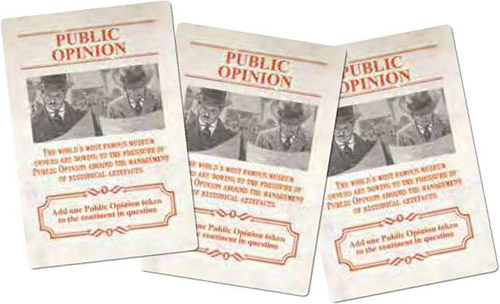 These cards mean that the Press has started to notice that a lot of artifacts are being taken from a certain Continent and too few of them are being exhibited. The resulting bad publicity could have terrible consequences for our curators...