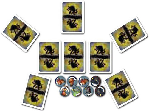 There should always be three more cards than the number of players. Shuffle the selected cards face down and deal one to each player. Put the remaining three cards and tokens that match all the cards being used in the middle of the table.