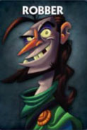 At night, the Robber may choose to rob a card from another player and place his Robber card where the other card was. Then the Robber looks at his new card. The