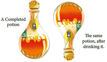 At any time during your turn, you may drink one or more of the Potions you have completed to activate their magical effects. Each Potion is a one-use special power: once a Potion has been drunk, it cant be drunk again.