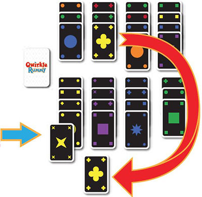 Whenever you make a Qwirkle, remove the Qwirkle from the play area. Set the cards to your side so that you can count how many Qwirkles you made at the end of the game.
