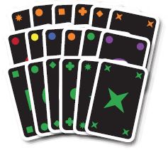 For example, you can start a new set and also add a card to an existing set. Or you can add cards to several existing sets. A set consists of at least 3 cards that share one attribute, either color or shape.