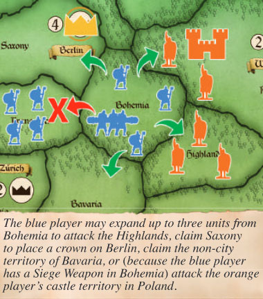 If an opponent's territory contains a castle, you may not expand into that territory unless your expanding army contains a Siege Weapon.