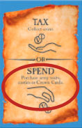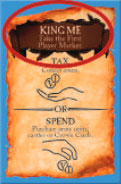 This card allows you to spend your coins to make purchases that strengthen your kingdom. You may spend coins to recruit new army units, build castles and buy crown cards. Spent coins are returned to the reserve.