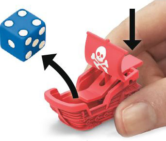Hold the sides of the boat with your thumb and forefinger, and press the lever to roll the dice!