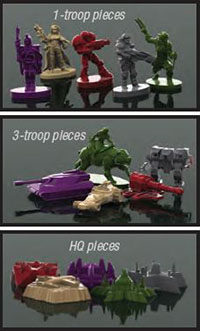 There are two different types of troops: the single figure represents one troop; the vehicle/mounted figure represents three troops.