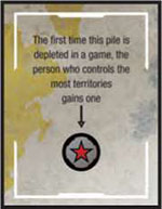 At some point in the game, the deck of Coin cards may run out. The first time this happens, follow the instructions on the sideboard to award a Red Star token to the player who controls the most territories.