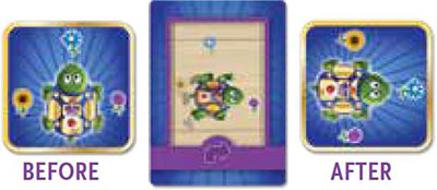 If, at the end of the sequence, the Turtle has landed on the correct Jewel-they WIN! If not, they use the Bug Tile and you (the Turtle Mover) will reverse all of the moves (including un-melting Ice Walls and moving Crates back to their start position) while making turtle noises in reverse.