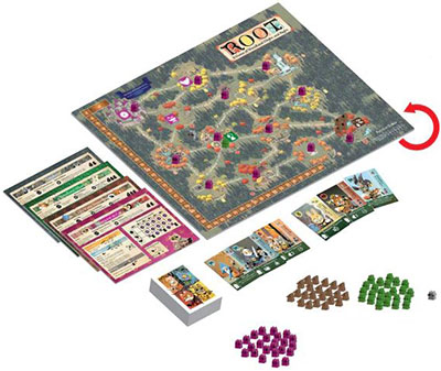 Root is a fast-paced game of adventure and war. You will play as one of four factions vying to show that you are the most legitimate ruler of the vast Woodland.