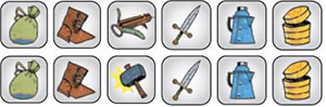 Gather the 12 item chits shown to the right and place them on their matching spaces near the top of the map.
