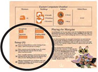 The back of each faction board lists all of its pieces and gives its basics of play.