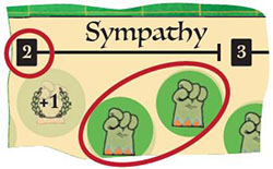 The more sympathy on the map, the more victory points they score. Gaining the sympathy of the people requires supporters, cards on the Alliance's faction board.