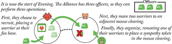 • Organize: Remove one of your warriors from an unsympathetic clearing to place a sympathy token there. Score the revealed victory points.