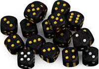 Most of the dice have gold pips. Use these for all setup on this page. The silver -pipped dice are special.