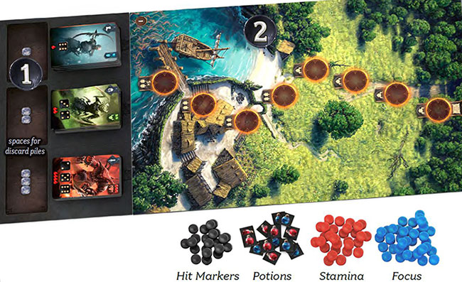 3 Your stamina pool starts with the number of red stamina tokens printed on the board $.