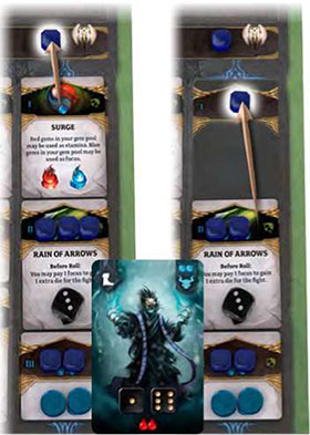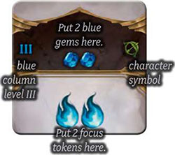 4. Some skills will have stamina or focus tokens - or both. Place the appropriate tokens on the flame symbols.