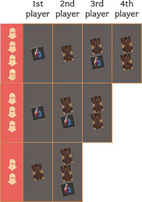 Choose the starting player randomly. You will play in clockwise order. Deal random starting bonus cards or potions to each player as indicated in the table: