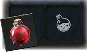 If you get a potion, flip it as though it was a coin - that determines whether it is red or blue. Then put it in one of your potion slots.