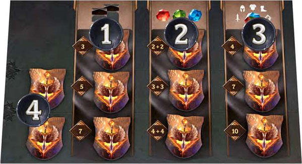 After the deal, the fury deck can be set aside. It will no longer be needed. Keep your rage tile in your gem pool. Start the Final Battle by putting your figure on the leftmost card of your battle board.