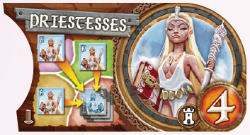 Priestesses represent another race that shines after they are in decline, forming a highly defended tower that earns coins like multiple regions. The trick is grabbing multiple regions before going in to decline, and that's not easy given their low race tile token number of 4.