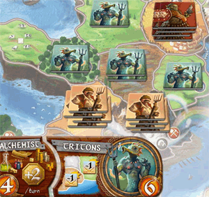 De speler neemt nu de overeenkomende pionnen (aantal gelijk aan de som die op de ras banner en de bijbehorende speciale kracht aangegeven staat).
