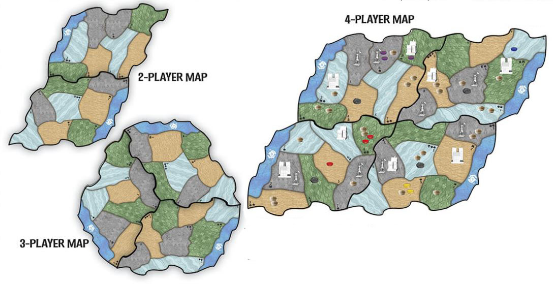 - Invaders: 45 Explorers (white pawns); 35 Towns (white houses); 20 Cities (larger white buildings)