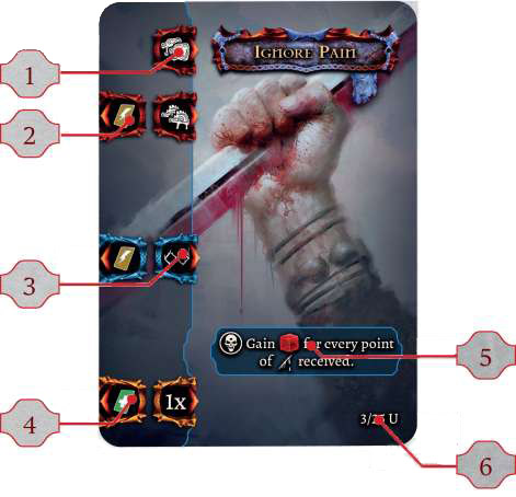 Ability. The text part of the card containing special rules, with various timings. Only Abilities that are visible (and are not covered by other cards in the Sequence) are considered active. Passive cards (see below) are never covered, so their Abilities remain in play throughout the Encounter.