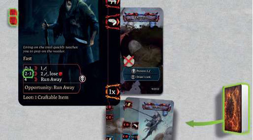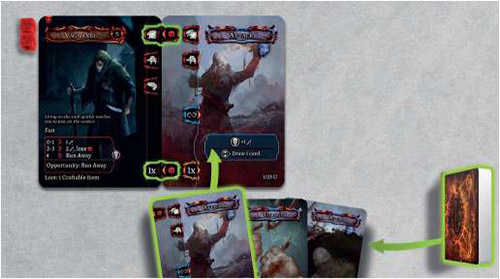 Beor draws a gray Encounter - it's a Vagabond. This enemy has the Fast Trait - it means the player can only play up to two Com- bat cards per turn.