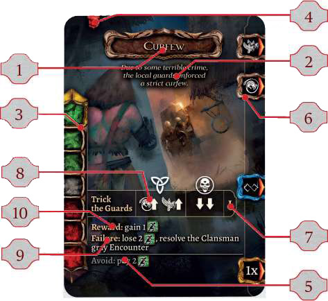 If the card has an "Avoid" section at the bottom, you may decide to bypass the Encounter. In that case, you need to pay all costs and meet all requirements stated in the "Avoid" section. Then, put this Encounter card at the bottom of the Blue Encounter deck and continue the game.
