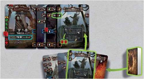 Charges: Some cards instruct you to gain Charges - use universal markers and place them on the card. You can use "Pay x Charges" Abilities any time you want.