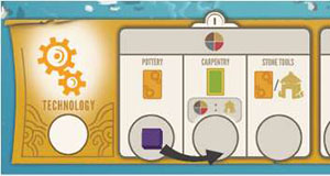 Important: If you are the first of your neighbors to start a new era, gain resources as shown underneath the newly covered space.