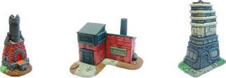 5 Landmarks (x18): Place landmark miniatures on top of the matching slots on the landmark board. The extra landmarks go near the tech card deck.