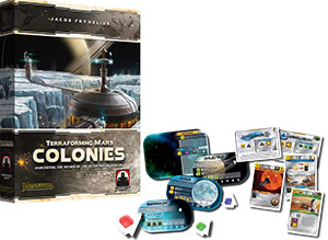 In this expansion to Terraforming Mars, you have the opportunity to visit several moons, represented by Colony Tiles, where you can build colonies, or trade to get the specific benefits from them.