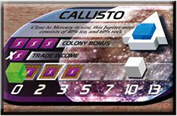 Example: You are the blue player and want to trade with Callisto (image above). You choose to spend 3 titanium resources for this, and then move your trade fleet from the Trade Fleets Tile to Callisto and get the trade income.