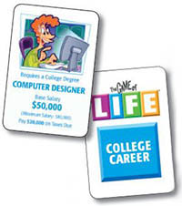 If you choose to take a new College Career card, have another player fan out the College Career cards facedown and randomly draw two cards. Choose either card for your new career; or choose neither and keep your current Career card. Return the cards you didn't choose to the deck.