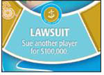 Whenever you land on a blue Lawsuit space, collect $100,000 from the player of your choice.