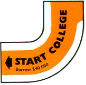If you decide to go to college, place your car on the START COLLEGE space. Borrow $100,000 from the bank for tuition (see BANK LOANS).