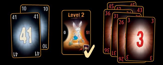 Once the players have laid all the cards in the correct order (white ascending, red descending), they have completed the current level!