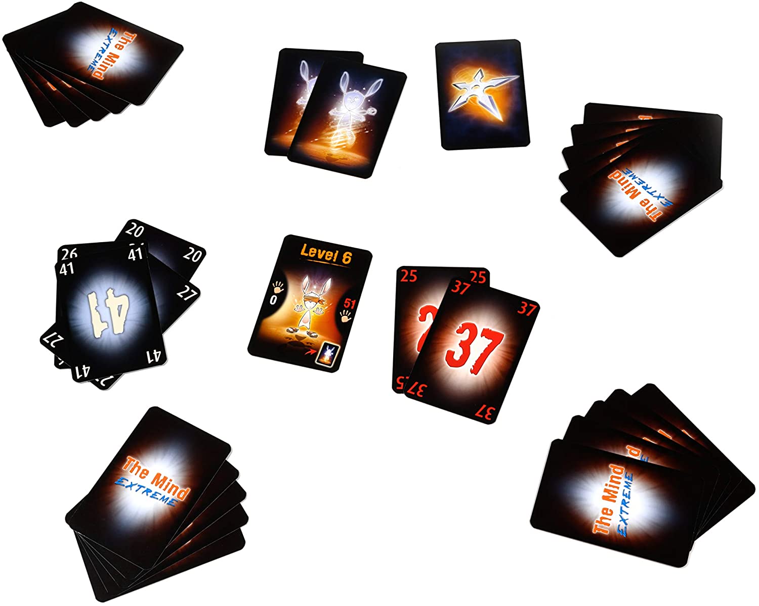 The basic rules of the original "The Mind" game are the same. In the first round (level 1) everyone gets 1 card, in the second round (level 2) everyone gets 2 cards, etc. Everyone forms one team and tries to lay all the cards they receive correctly in the middle of the table.