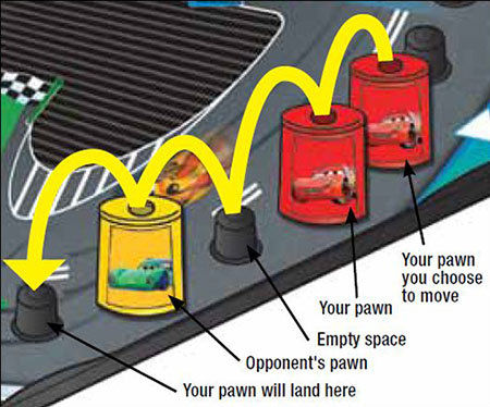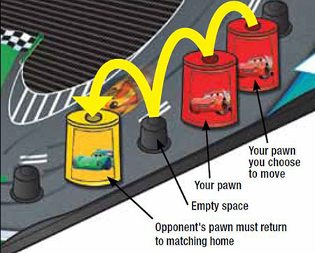 If your car lands on a space with an opponent's car on it, send that car back to its Starting area. Your car now occupies that space.