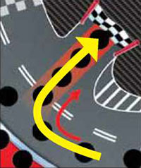 When your car has made it around the track once, follow the arrow to enter your Victory Lane. Make sure it's your Victory Lane and not some- one else's!