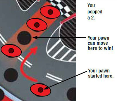 Pop any number that could get you into your Victory Lane and move your car onto any open Victory Lane space.