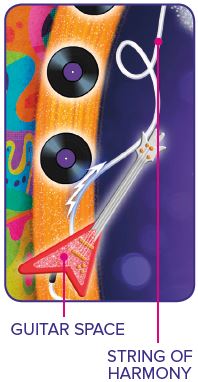 If you land on a GUITAR space by exact count, move your Troll along the String of Harmony to the next GUITAR and end your turn.