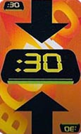 The first card played must be a card that affects the running total: 5, 10, :0, :30 or :60. (If you push the total over 60 or if you don't have any Number card to play, Boom-O! Flip over one of your "Ticking Time Bomb" cards!) The second card played will affect gameplay as it continues with the next player.