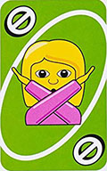 When you play this card, you also play an emoji FACE CARD on top of it. Then, the next player in order must make the same face on the emoji face card, take their turn, and CONTINUE TO MAKE THE FACE until their turn comes around again.
