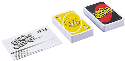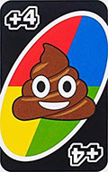 If they stop making the face before their next turn, they must draw 4 cards! You may NOT play an action card (Draw 2, Reverse, Skip, Wild or Wild Draw 4) with the Wild Emoji Card, only an emoji face card.
