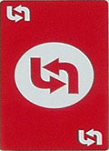 When you play this card, the direction of play reverses (if play is currently to the left, then play changes to the right, and vice versa). This card may only be played on a matching color or on another Reverse card.