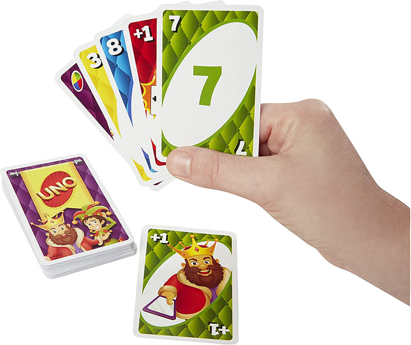 +1 Card - When this card is played, a player must draw 1 card from the draw pile. Which player depends on the kind of +1 card played. There are two kinds of +1 cards: King's Choice and Jester.