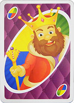 Wild Card - When this card is played, THE KING gets to choose the color that continues play (any color including the color in play before the Wild card was laid down).