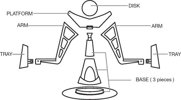 The scale consists of 8 pieces: 2 trays, 2 arms, 1 platform, and 3 pieces that make up the base. Assemble the scale pieces together as shown.